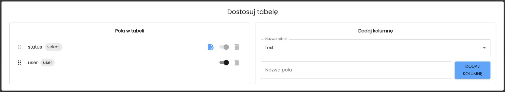 Aby skonfigurować tabelę, kliknij czarny przycisk „Dostosuj”. To tutaj otwierają się wszystkie możliwości personalizacji.