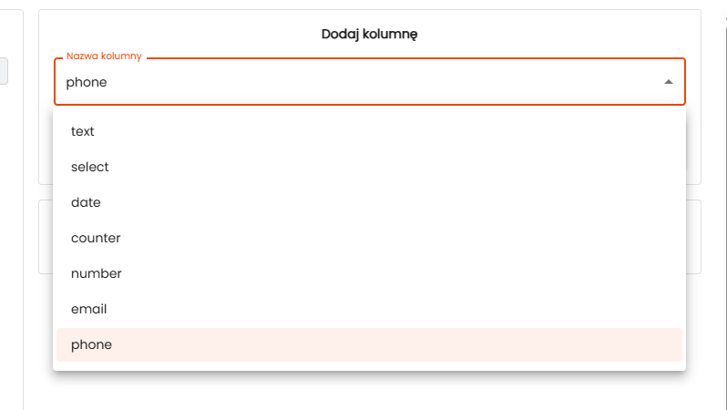 - Pola phone – predefiniowane pole kontaktowe, przeznaczone do wprowadzania numerów telefonu. Zaleca się jego stosowanie szczególnie w przypadku integracji systemu z zewnętrznymi narzędziami.