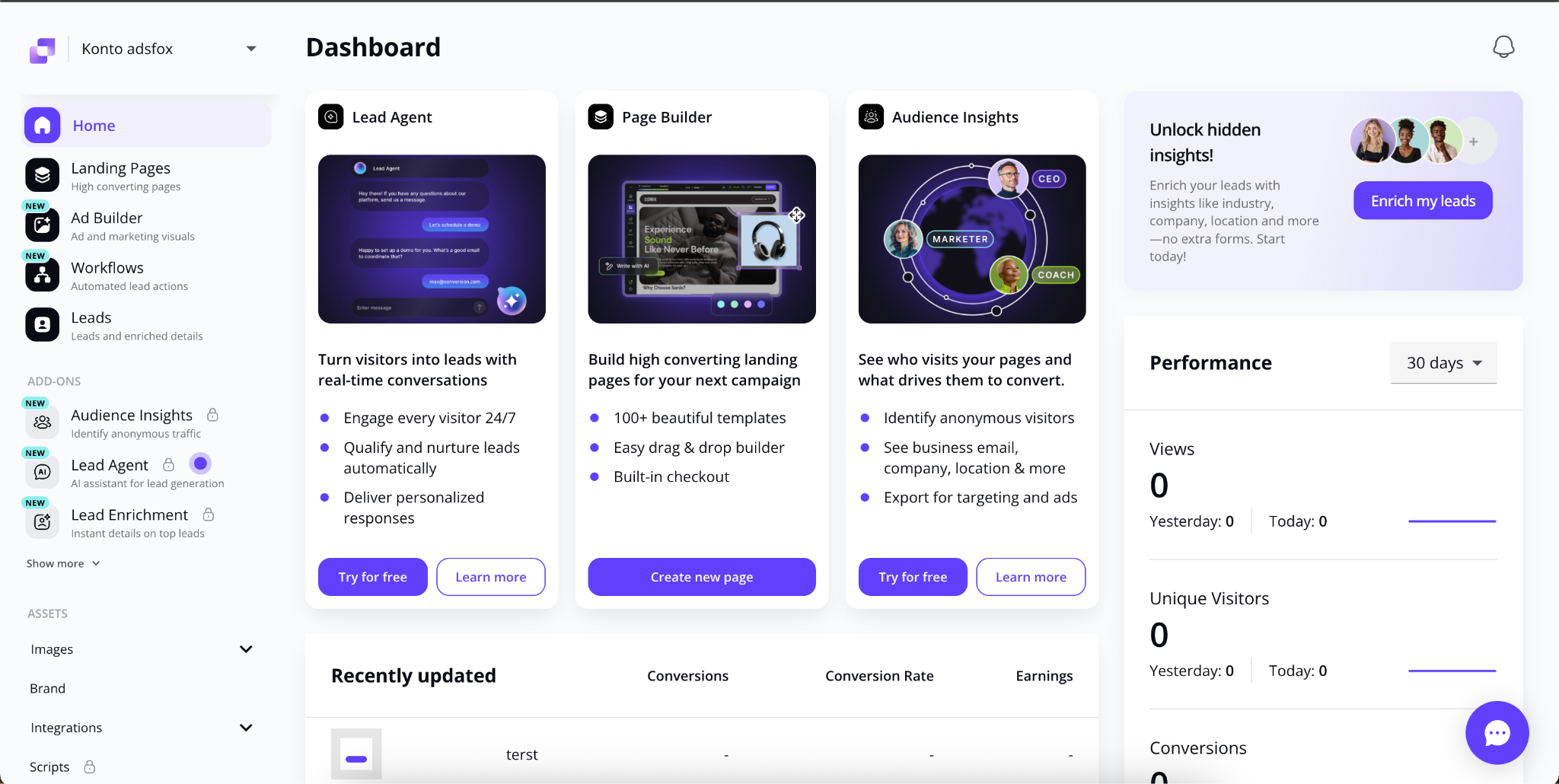 Po przejściu wszystkich powyższych kroków integracja LeadPages z adsfox jest w pełni aktywna.