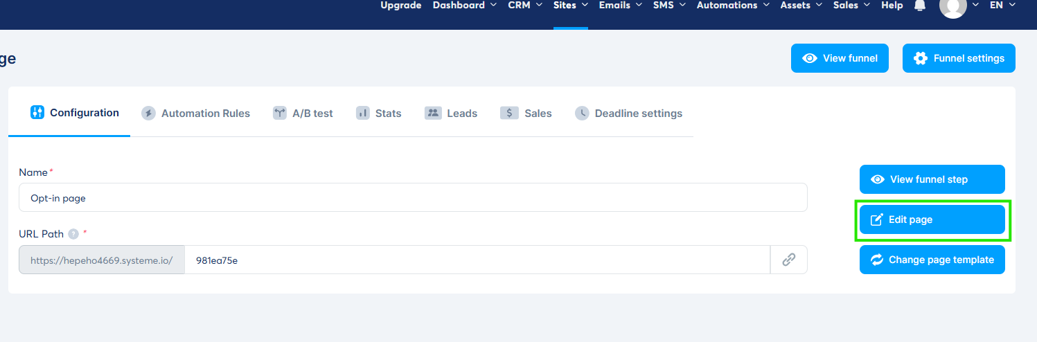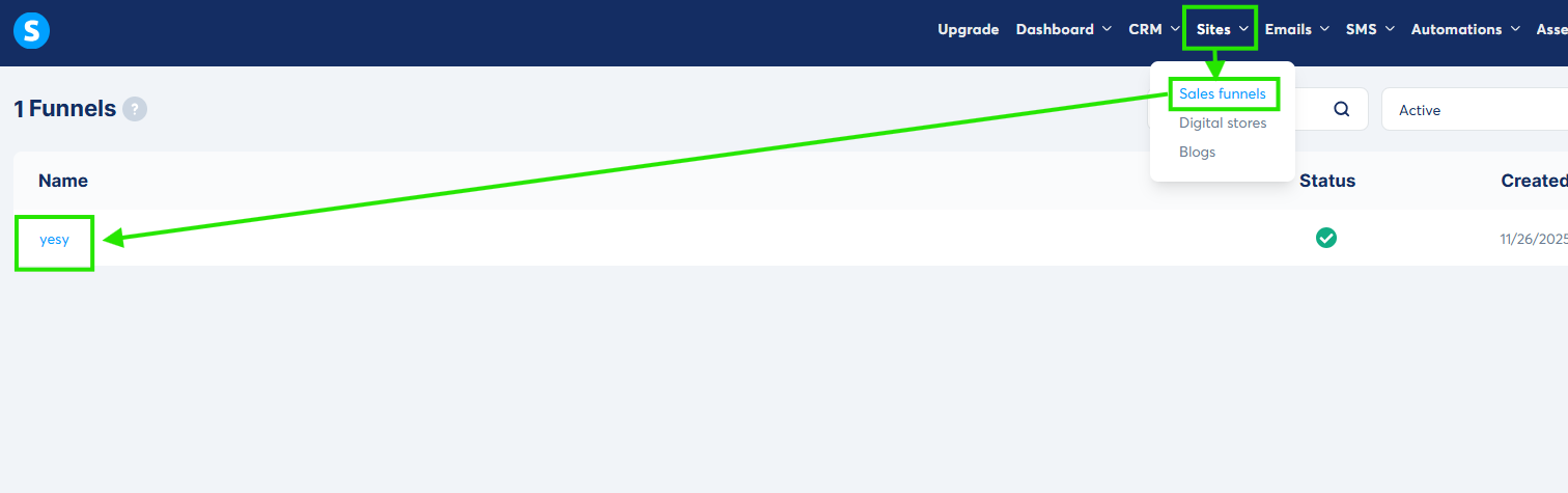 - Przejdź do zakładki Sites -> Sales funnels a następnie kliknij na nazwę swojego lejka.