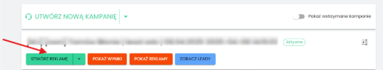 Aby to zrobić, należy zalogować się do systemu, przejść do zakładki Facebook → Kampanie reklamowe, a następnie kliknąć przycisk „Stwórz reklamę”.