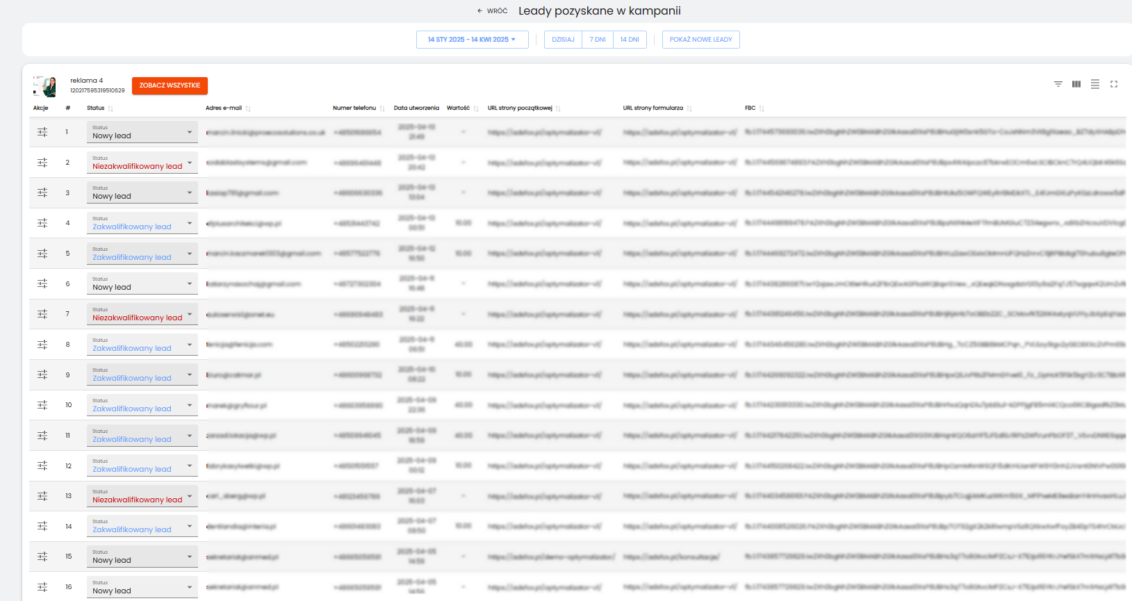 Dostępny jest również podgląd pozyskanych leadów.
