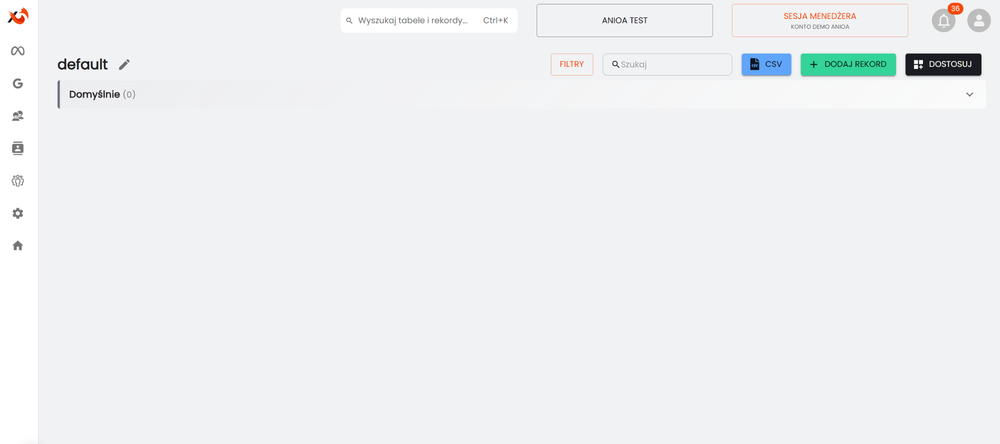 W każdej przestrzeni roboczej w adsfox CRM automatycznie tworzona jest tabela o nazwie „default”. Stanowi ona podstawę do przechowywania kontaktów i leadów. Tabelę można dowolnie dostosować do indywidualnych potrzeb – zmieniać jej nazwę, dodawać kolumny, konfigurować statusy oraz importować gotowe struktury z plików Excel.